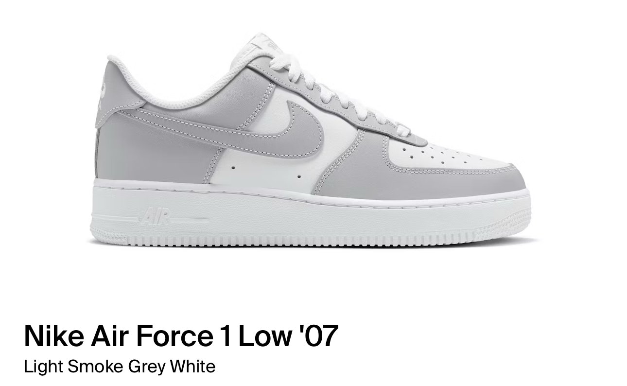 Nike Air Force 1Low’07 White Light Smoke Grey (FJ4146-100)
