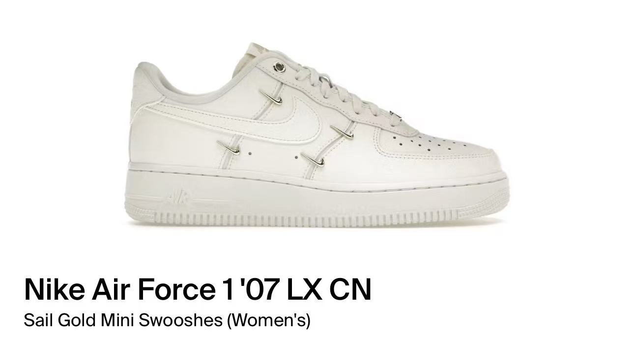 Nike Air Force 1’07 LX CN Sail Gold Mini Swooshes (Women’s)(FV3654-111)