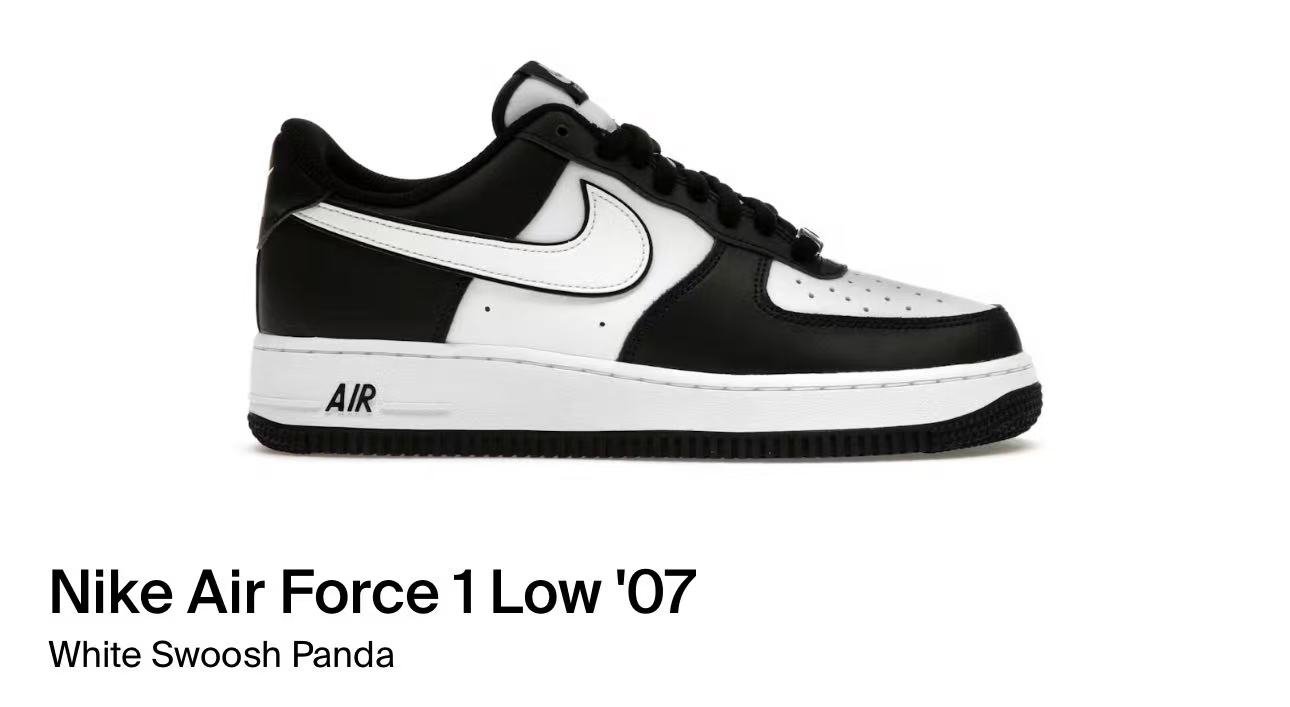 Nike Air Force 1Low’07 White Swoosh Panda(DV0788-001)