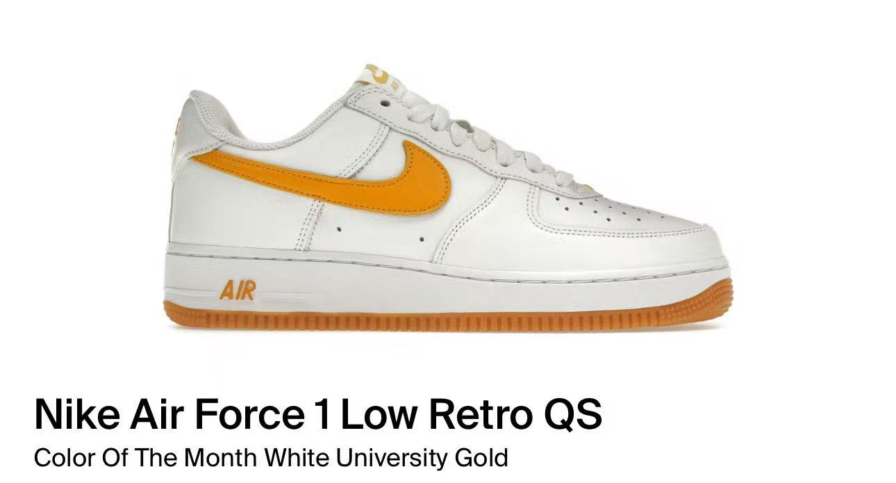 Nike Air Force 1 Low Retro QS Color Of The Month White University Gold(FD7039-100)