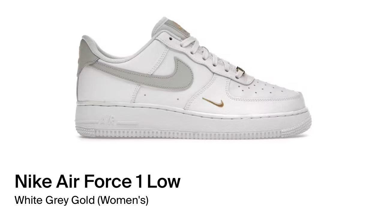 Nike Air Force 1Low White Grey Gold (Women’s)(CZ0270-106)